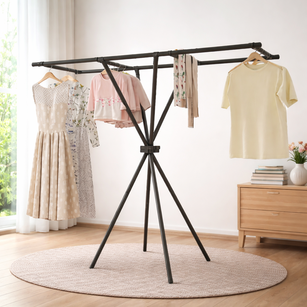 Un tendedero funcional, ligero y fácil de guardar que se adapta a tu espacio y te ayuda a secar tu ropa de forma práctica en cualquier lugar.