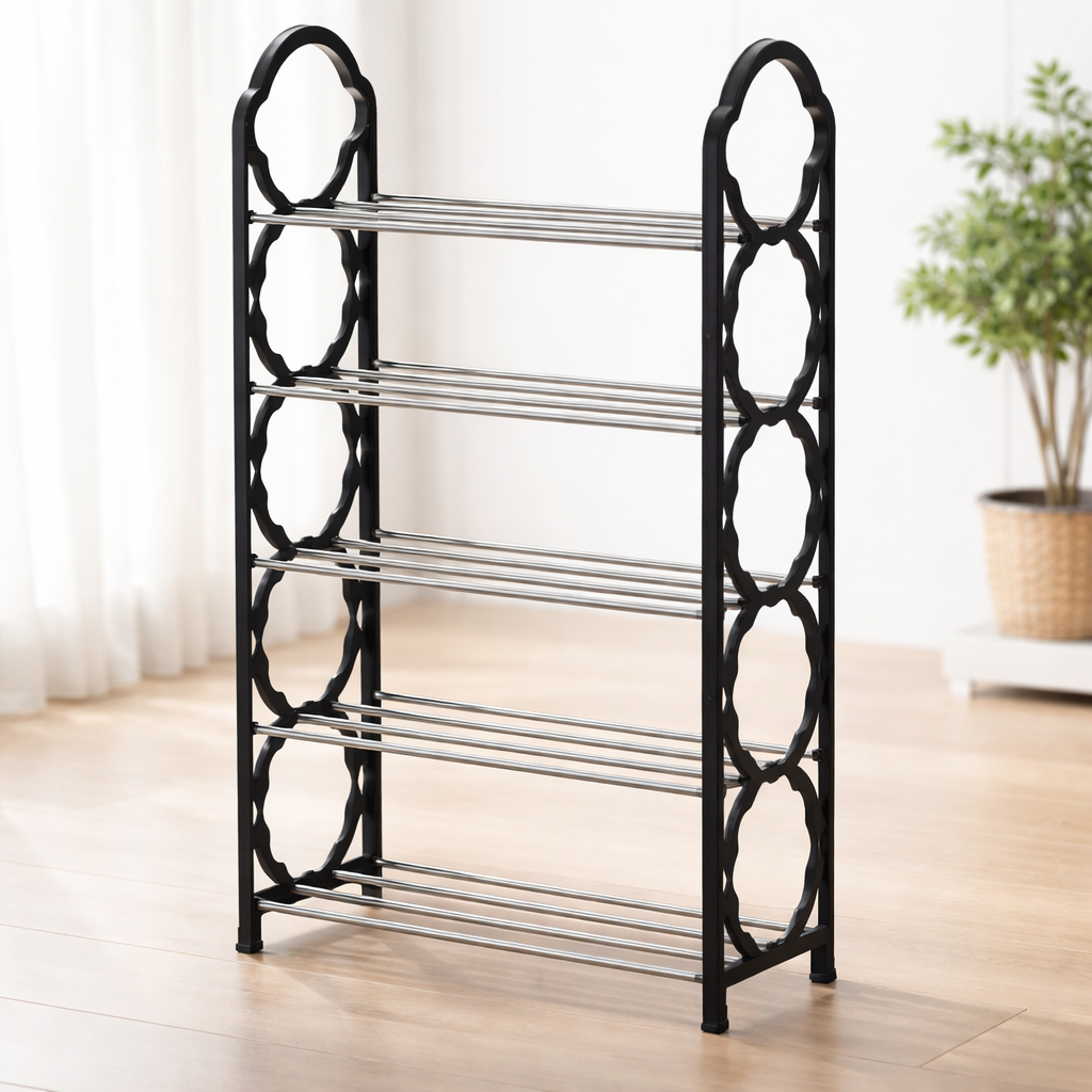 Este organizador metálico de 5 niveles te ofrece una solución sencilla y eficiente para aprovechar mejor cada rincón, manteniendo tus pertenencias fuera del suelo y perfectamente organizadas.